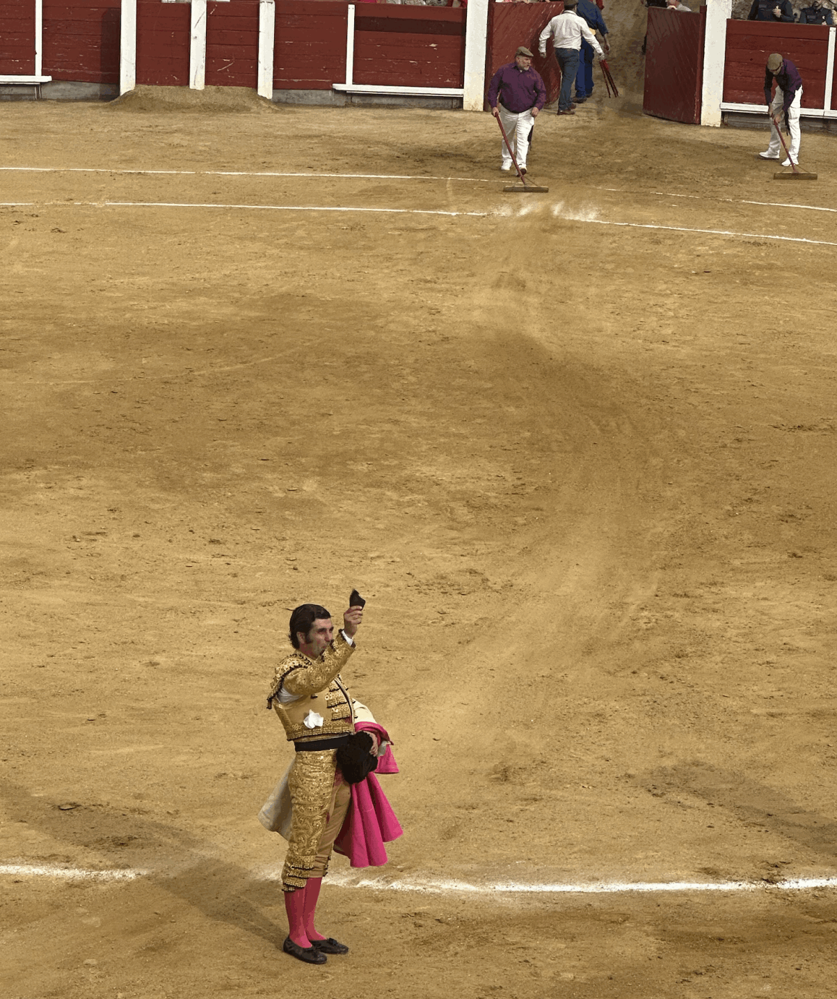 Abría el cartel José María Manzanares. Hasta el año pasado esto era raro. Pero ya no le queda otra. Quitando a Morante, Ferrera, a Ponce y algún otro, ya está en el grado de la veteranía. Poco hizo en la lidia de su primero. Lo de estas últimas temporadas: un baile bonito aliviando al toro, de un lado hacia otro, con la izquierda o con la derecha. Encima un resbalón inoportuno dejó al torero dolorido y pasó por ello a la enfermería. En el cuarto de la tarde se vio a un Manzanares superado no solo por la falta de casta del toro (todo hay que decirlo) sino por el dolor y una preocupante falta de ideas. Con la espada no ha sido su mejor tarde.