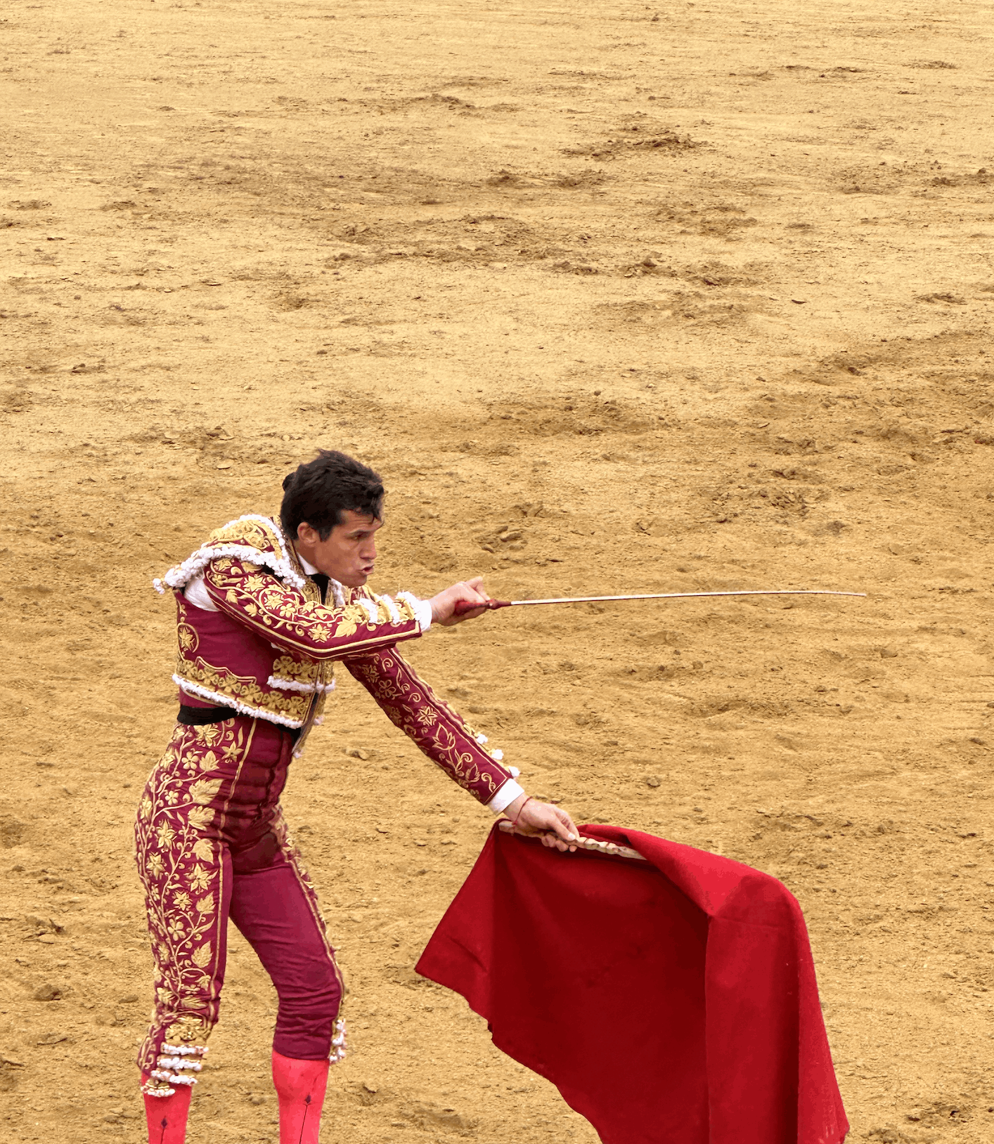 Manzanares pasa por las plazas con su habitual elegancia. Vestía un terno plomo y azabache que le quedaba como un guante. Torea con estilo, con su habitual limpieza y con esa habilidad para echarse el toro un poco hacia adelante y que no le pese, no le moleste. El resultado suele ser desigual, a veces emociona, a veces deja frío pero a la siguiente tanda compone de nuevo la figura, anima al toro con la voz y aquello parece un ballet elegantísimo. El público de Roca Rey es más de Manzanares que de Morante y así se notó. Cortó una oreja en su primero y podría haber cortado dos en el siguiente de no ser por un vergonzante metisaca que, desde luego, no es marca de la casa.