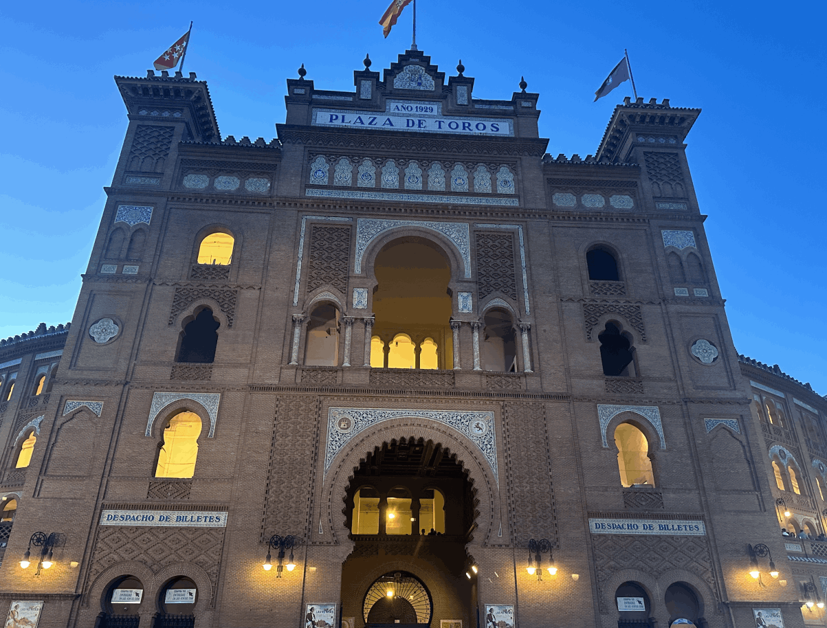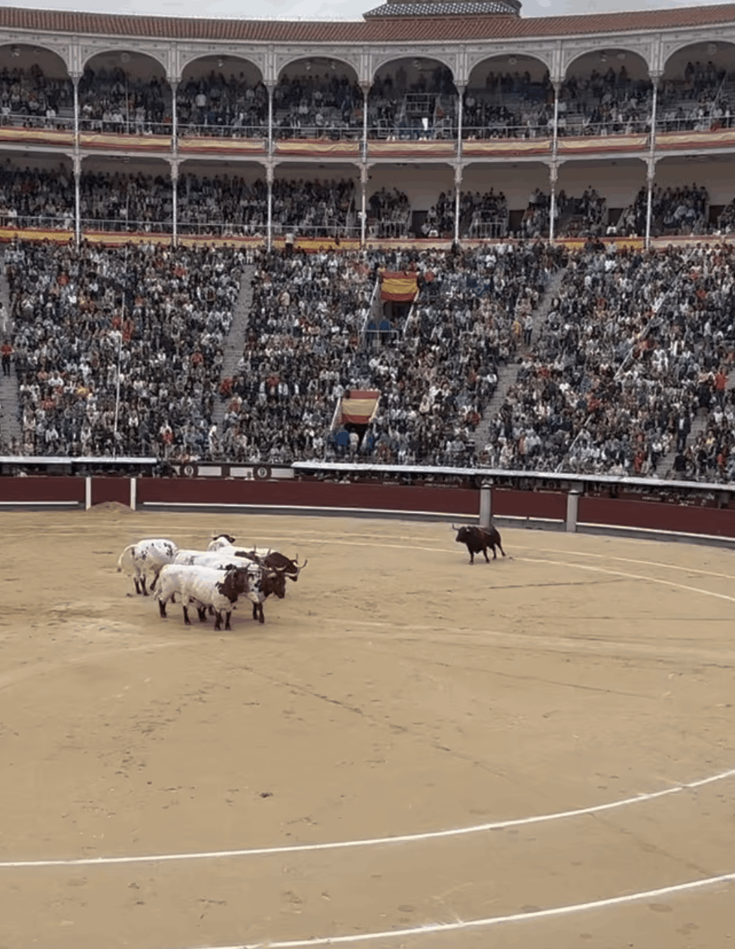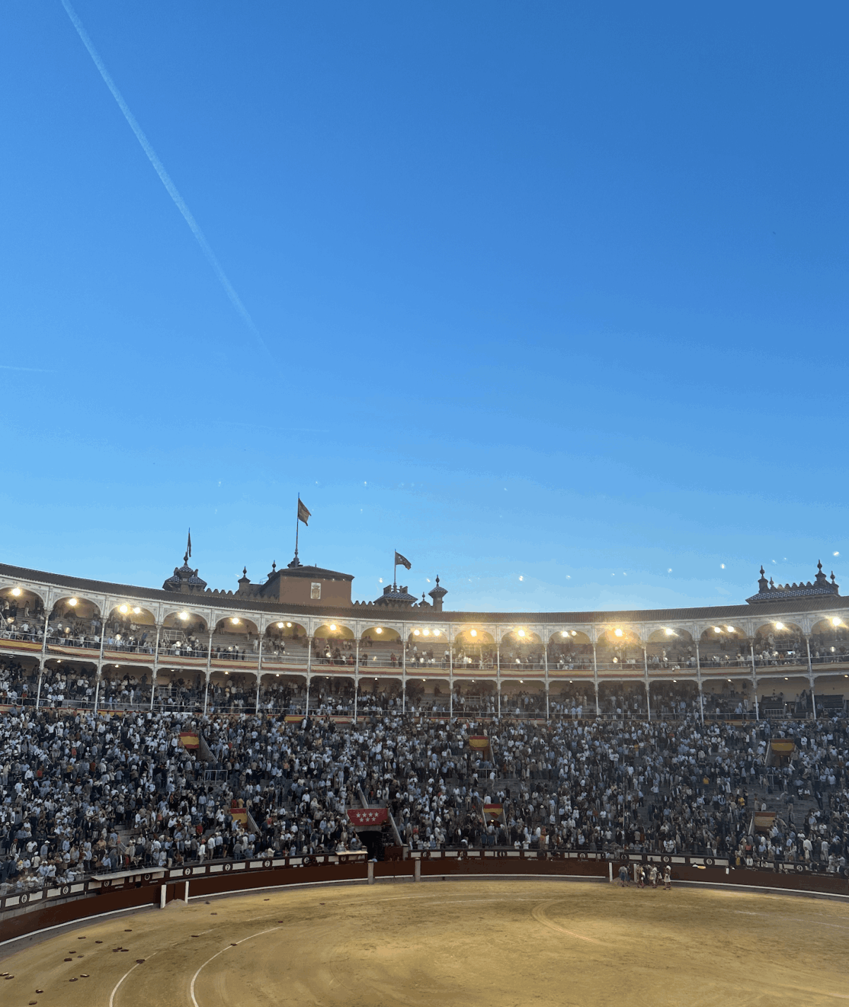 Plaza de toros Las Ventas de Madrid en tarde primaveral con algo de viento. Lleno de no hay billetes.