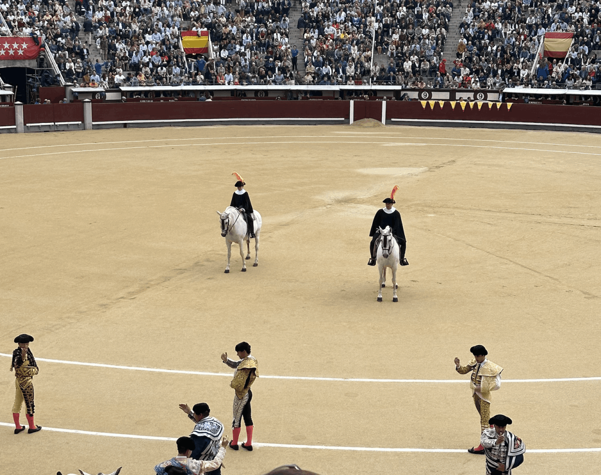En primer lugar, lo inusitado del cartel. Los "mano a mano" han de tener un carácter duelístico, de afrenta. Joselito, Belmonte; Paco Camino y El Cordobés o, en tiempos más recientes, Joselito y Ponce. El único "mano a mano" justificado en nuestros días sería el de Roca Rey con Daniel Luque, pero antes nos tocará el gordo en el Euromillones. En segundo lugar, la Corrida de la Prensa se convirtió en una especie de Beneficencia anticipada. Tal vez por razones de agenda, tal vez por coincidencia electoral, no quiso el Rey venir el próximo domingo por lo que hubo de engalanarse el Palco Real a mayor gloria del monarca, siempre tan bien recibido, de Ayuso, que llega como una reina, y del ministro Planas, que parece una buena persona y a quien le correspondió sustituir al escabullido cultureta Urtasun. En resumen, tarde de gala, tarde de expectación. No parece, por otra parte, buena idea concentrar la explosión del encaste Santa Coloma y Albaserrada (Escolar, Victorino, Adolfo) tan seguidos y menos en una feria que está siendo tan exigua de triunfos.